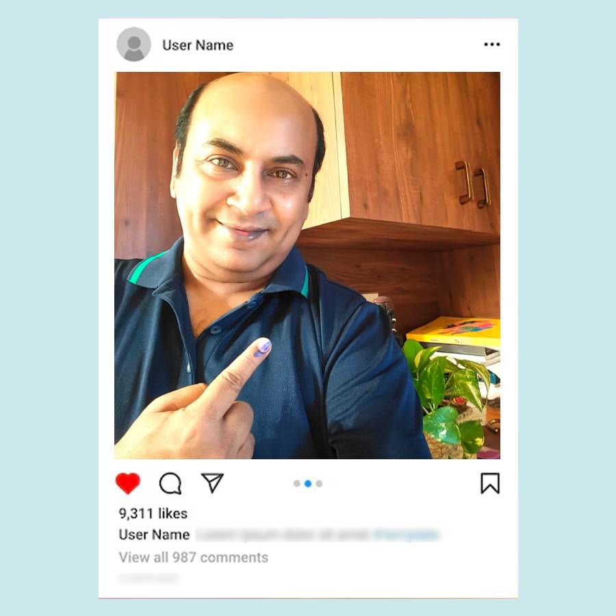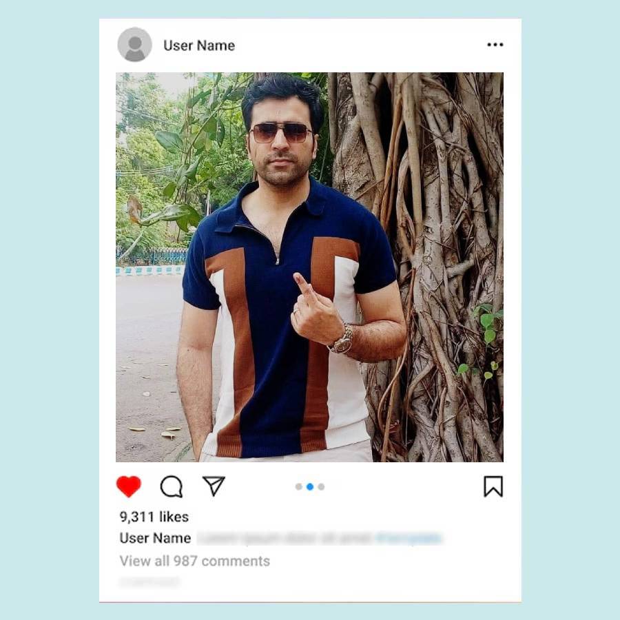 একেন অথবা লালমোহন— পর্দায় যেমনই সাজুন, অভিনেতা অনির্বাণ চক্রবর্তী সকাল সকাল ভোট দিতে গিয়েছেন সাধারণ নীল রঙের একটি পোলো টি শার্ট পরে।