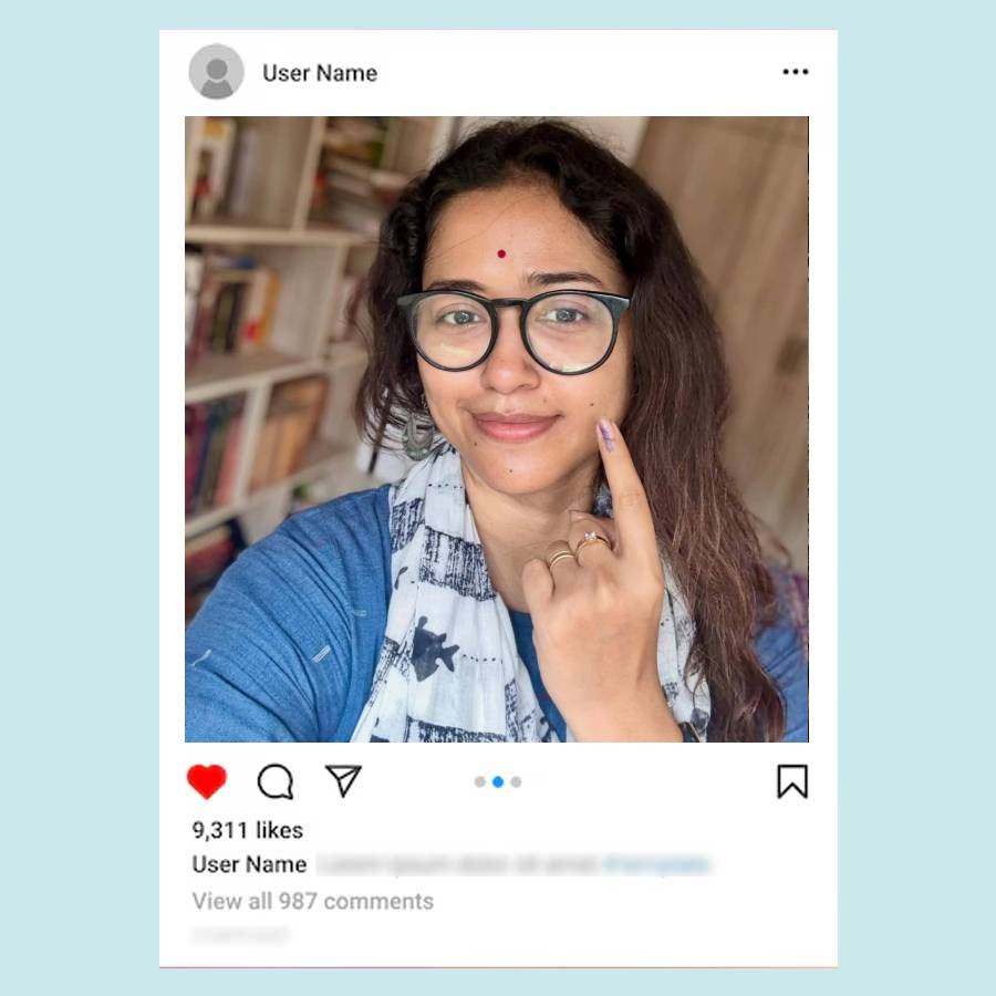 সোহিনী সরকার ভোট দিতে গিয়েছিলেন নীল রঙের তাঁতের কুর্তার উপর সাদা-কালো নরম সুতির স্কার্ফ জড়িয়ে। কোনও মেকআপ করেননি তিনি। চোখে চশমা, কপালে ছোট্ট লাল টিপ, হাতে নীল ব্যান্ডের ঘড়ি আর খোলা চুলে তাঁকেও নায়িকা বলে মনেই হচ্ছিল না।