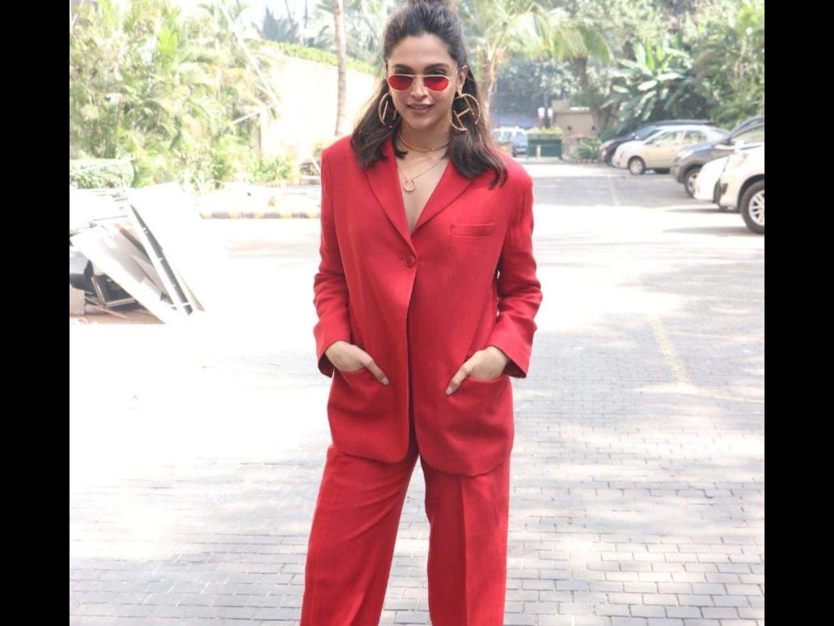 লাল প্যান্ট-স্যুট পরিহিত দীপিকার মধ্যে কার ছায়া লুকিয়ে আছে? রণবীর সিংহ! দীপিকার সাজগোজের অনুপ্রেরণা কি রণবীর? অন্তত এই ছবিটি তো তাই বলছে।