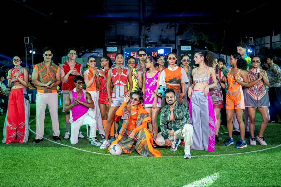 একেবারে নতুন ধরনের ফ্যাশন শো দেখল কলকাতা। শনিবাসরীয় সন্ধ্যায় সল্টলেক স্টেডিয়ামের ভিতরের হোটেলের খেলার মাঠ হয়ে ওঠে ঝলমলে চোখধাঁধানো র্যাম্প। বেজে ওঠে গান। নিয়ন রঙের পোশাকে পর পর মডেলদের আগমন শুরু হয়। নতুনত্ব যে কেবল ফ্যাশন শো-এর কায়দাতেই ছিল, তা নয়, পোশাকেও অভিনবত্বের ছোঁয়া দেখা যায়।