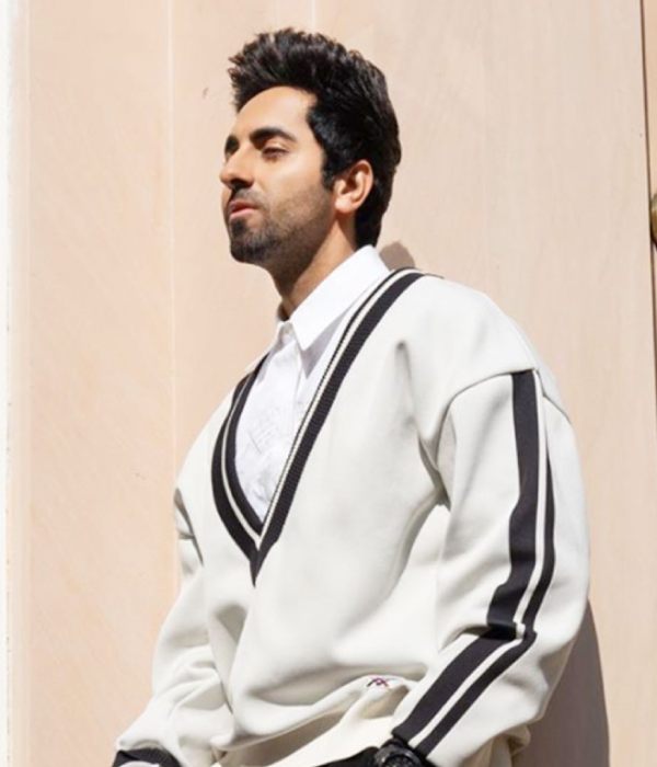 একটা সময় শীতকাল ছিল ক্রিকেটের মরসুম। তখন ভারতীয় ক্রিকেট টিমকে ‘মেন ইন ব্লু’ বলা হত না। সাদা জার্সির উপর শীতকালে কালো স্ট্রাইপ দেওয়া ভি গলার সোয়েটার পরে মাঠে নামতেন ভারতীয় ক্রিকেটারেরা। আয়ুষ্মান সেই পুরনো স্টাইলকেই আরও কেতাদুরস্ত করে তুলেছেন। তাঁর সোয়েটারের ভি গলা আরও ছড়ানো, আরও নিচু। সঙ্গে ফুলহাতা সোয়েটারের হাতেও রয়েছে সাদা-কালো স্ট্রাইপ। জিন্স বা হালকা রঙের ট্রাউজ়ারের সঙ্গেও এই সোয়েটার ভাল লাগবে।
