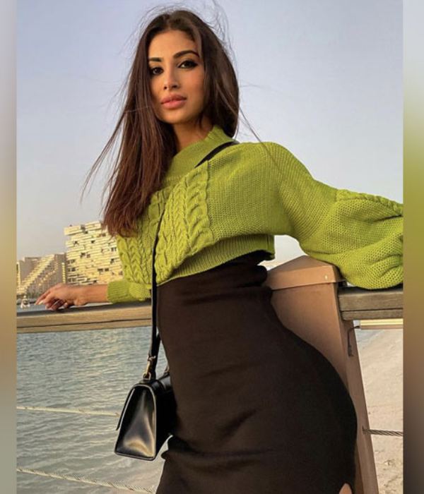 পেয়ারা সবুজ রঙের খাটো ঝুলের সোয়েটার। সঙ্গে বিনুনির নকশা দেওয়া বেলুন হাতা। মৌনী ওই সোয়েটার পরেছেন কালো রঙের আঁটসাঁট ড্রেসের সঙ্গে। সঙ্গে স্ট্রেট করানো খোলা চুল। কাঁধে কালো স্লিং ব্যাগ। পায়ে কালো বুট থাকলে ডিনারের অনুষ্ঠানেও ওই পোশাক হতে পারে পিকচার পারফেক্ট!