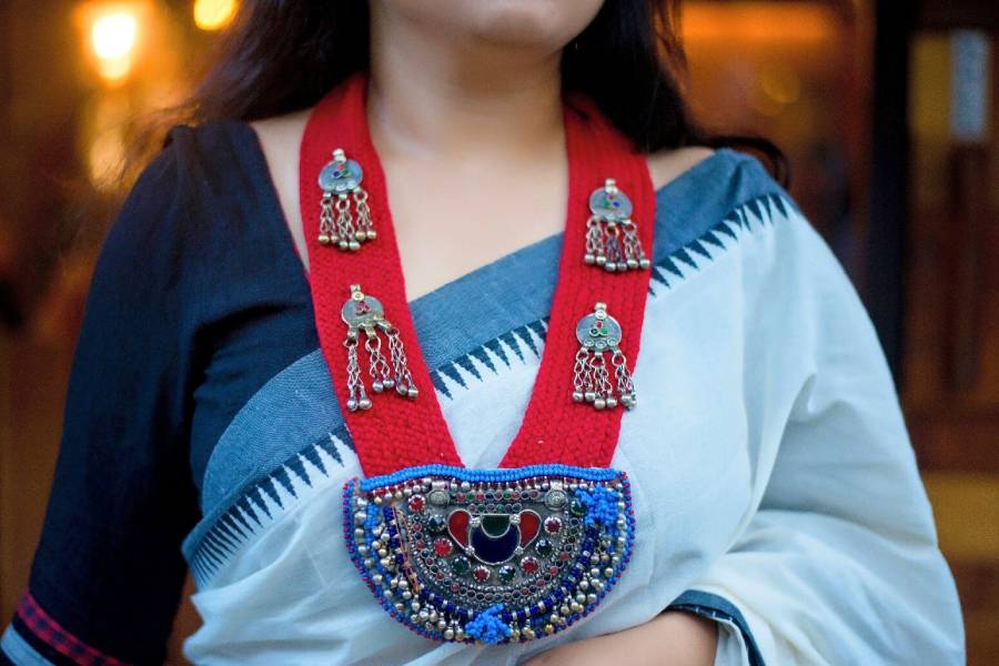 আদিবাসীদের মাথার কাঁটা এখন মেয়েদের বেশি পছন্দের। এ ছাড়া কাঠ, মাটি, প্লাস্টিক, পুঁতি, পাট এবং বিভিন্ন রকম পাথরের তৈরি বেশ বড় আর রঙিন গয়না তো আছেই। আকারে বড়সড়, আদিবাসী ছোঁয়া আছে, এমন গয়নাতেই মজেছেন মেয়েরা। পোশাকের সঙ্গে মানাসই পুঁতি-বিডসের মালা, ধাতুর তৈরি কোমর বিছে বা বাজুবন্ধ পরতে পারেন। পোড়ামাটির দুল, বাঁশ অথবা ঝিনুক দিয়ে তৈরি হার, কাঠের ক্লিপের পাশাপাশি কড়ি আর পুঁতির মিলমিশে তৈরি গয়না সব পোশাকের সঙ্গেই মানানসই।