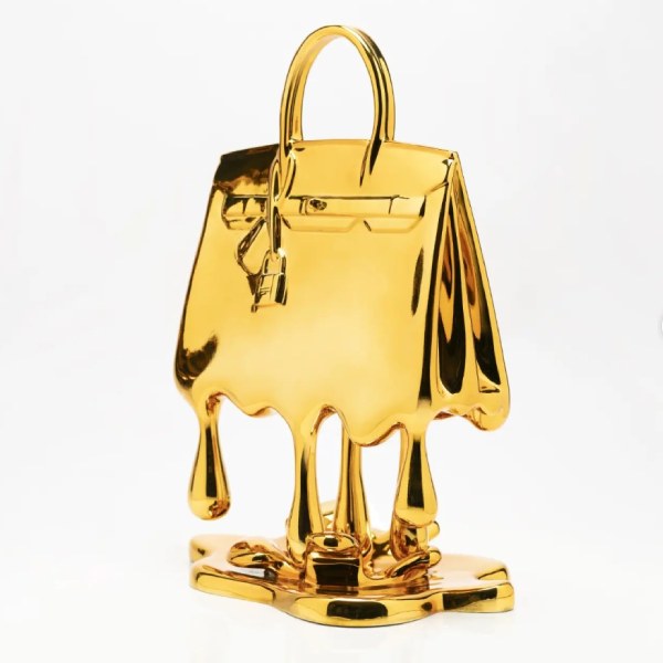 ব্যাগ থেকে গলানো সোনা গড়িয়ে পড়ছে— ভাস্কর্যটিকে এক কথায় বোঝাতে গেলে এটুকুই বলতে হয়। তবে যে ব্যাগ থেকে সোনা গড়িয়ে পড়ছে সেই ব্যাগ যেমন তেমন নয়। ব্যাগের দুনিয়ার নামী সংস্থা হার্মিজ়ের বার্কিন ব্যাগ। যে ব্যাগের দাম শুরুই হয় ২০ লক্ষ টাকা থেকে। বার্কিন ব্যাগ হাতে কর্ণকে আগেও দেখা গিয়েছে। তবে এ বার তাঁর বার্কিন প্রেমকে অন্য মাত্রাতেই নিয়ে গিয়েছেন কর্ণ। তিনি ব্যাগের বদলে বার্কিনের ভাস্কর্য হাতে পৌঁছেছেন শিল্পের অনুষ্ঠানে।