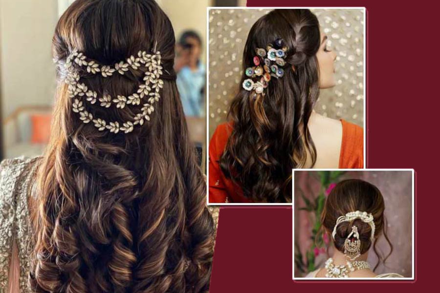 বিয়ে মানেই সাজের বাহার। ওই একটা দিন সব মেয়েই চান, যেন তাঁর সাজ হোক একেবারে চোখ ধাঁধানো। পোশাক থেকে রূপটান, চুলের বাঁধন থেকে থেকে অলঙ্কার— সবটাই হতে হবে নজরকাড়া। পোশাক বাছাইয়ের পর যে বিষয়টি নিয়ে হবু কনেরা সবচেয়ে বেশি বিভ্রান্ত হয়ে পড়েন, তা হল গয়নাগাটি। হালফ্যাশনে গয়নাগাটি কেবল হাতে, গলায় কিংবা কানে নয়, চুলের সাজেরও প্রধান অনুষঙ্গ হয়ে উঠেছে।