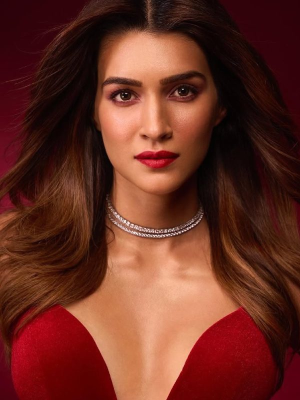 কৃতি শ্যাননের রেড লিপ বাকিদের থেকে আলাদা ভাবে ধরা দেয় টেক্সচারে। তাঁর ঠোঁটে লালিমায় শুধু রঙের বিশেষত্ব নয়, তার সঙ্গে রয়েছে মখমলের অনুভব। কৃতির ‘রিচ ভেলভেটি টোন’ রেড লিপস নায়িকার ধারালো মুখের সঙ্গে এক অদ্ভুত মার্জিত ভারসাম্য তৈরি করে। কৃতি সেই ভারসম্যের দাঁড়িপাল্লা আরও সমান সমান করেন গালে-কপালে হালকা ঝিকমিকে অভ্রকণার মতো ঔজ্জ্বল্যে।