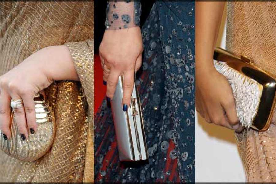অষ্টমীর রাত হোক বা নবমীর সকাল— জমকালো পোশাকের সঙ্গে একটি ক্লাচ সঙ্গে না রাখলেই নয়। স্ট্র্যাপ লাগানো ক্লাচও পাওয়া যায়। সোনালি, রুপোলি আর কালো, এই তিন রঙের ক্লাচ থাকলেই যে কোনও পোশাকের সঙ্গে মানিয়ে যাবে। তবে ক্লাচে প্রয়োজনীয় জিনিসপত্র ধরছে কি না, দেখে নেবেন। ক্লাচে টুকিটাকি জিনিস রাখারই জায়গা থাকে। তবে টাকাপয়সা, জরুরি কার্ড, মোবাইল ও যৎসামান্য মেকআপ রাখার মতো জায়গাও যেন হয়ে যায়।