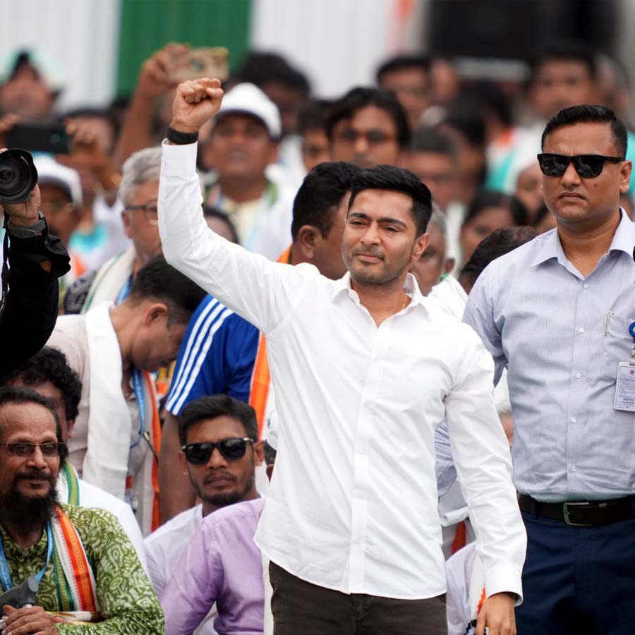 পুজো-পার্বণে তাঁকে ডিজ়াইনার পোশাকেও দেখা যায়। কিংবা বেড়াতে গেলে কেতাদুরস্ত স্ট্রেচেব্ল শার্টে। আবার বিদেশে দেশের প্রতিনিধি হিসাবে গিয়ে স্যুট-জওহরকোটও পরতে দেখা গিয়েছে তৃণমূলের সাংসদ অভিষেক বন্দ্যোপাধ্যায়কে। অর্থাৎ তিনি যস্মিন দেশে যদাচারে বিশ্বাসী। তবে তাঁর রাজনীতির মঞ্চেরও একটি সাজও আছে, যা তিনি গত কয়েক বছরে তৈরি করেছেন। পাটভাঙা সাদা শার্ট আর গাঢ় রঙের ট্রাউজ়ার্স। সঙ্গে পায়ে যে কোনও স্যান্ডাল অথবা হাঁটাহাঁটির দরকার পড়লে স্নিকার্স। এর উপর কখনও- সখনও রঙিন স্কার্ফ জড়িয়ে নেন তৃণমূলের সর্বভারতীয় সাধারণ সম্পাদক। সোমবারের মঞ্চেও তাঁকে রাজনৈতিক সভার চেনা সাজেই দেখা গেল। সাদা শার্ট, গাঢ় ছাইরঙা ট্রাউজ়ার্স এবং কালো মাথা-ঢাকা স্যান্ডালে। তবে তাঁর পিসি তথা দলনেত্রীর মমতার মতো গলায় স্কার্ফ জড়াননি।