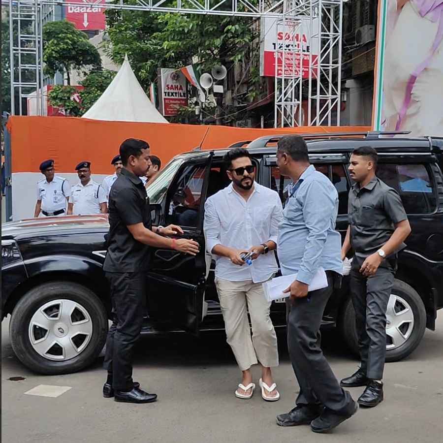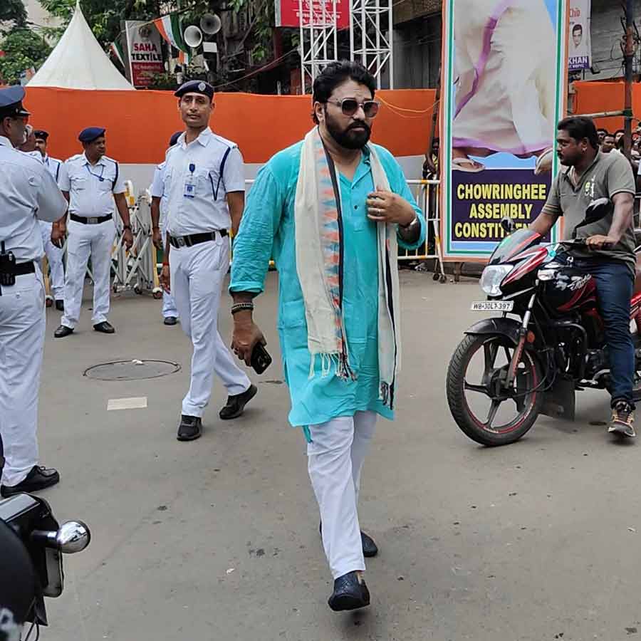 সবুজ নয়, নীলও নয়, সাদা শার্ট আর বেজরঙা ট্রাউজ়ার্সে দেখা গেল রাজ চক্রবর্তীকে। তবে চমক ছিল পায়ে। তৃণমূলনেত্রীর মতোই সাদা রঙের একটি হাওয়াই চটি পরেছিলেন রাজ। যেমনটা আবার তৃণমূলের যুবনেত্রী তথা টলিউড অভিনেত্রী সায়নীকেও পরতে দেখা যায়।