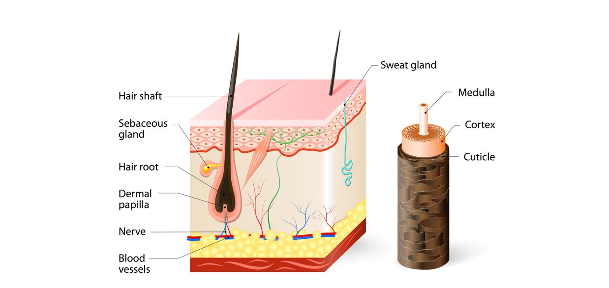 আমাদের চুল তৈরী হয়েছে কেরাটিন নামক একটি বিশেষ ধরণের প্রোটিন দিয়ে। চুলের জন্ম, বৃদ্ধি এবং মৃত্যুর সাইকেল মূলত তিনটে ভাগে ভাগ করা হয়- অ্যানাজেন (জন্ম), ক্যাটাজেন (বৃদ্ধি) এবং টেলোজেন (মৃত্যু)। বিভিন্ন মানুষের চুল বিভিন্ন হারে বৃদ্ধি পেলেও, চুলের গড় বৃদ্ধির হার প্রতি মাসে প্রায় দেড় ইঞ্চি। প্রত্যেকটা চুল আবার তিন ভাগে ভাগ করা যায়- মেডুলা (ভিতরের স্তর), কর্টেক্স (মাঝের স্তর) এবং কিউটিকল (বাইরের স্তর)। চুলের সিংহ ভাগ অংশটাই হলো কর্টেক্স যার উপর কিউটিকল আস্তরণ তৈরী করে চুলের কাঠামো ধরে রাখতে সাহায্য করে। আবার অন্যদিকে মেডুলার দ্বারা নির্ধারিত হয় চুলের ঘনত্ব, রং এবং টেক্সচার। বিভিন্ন রকম চুলের প্যাটার্নের মধ্যে বিশেষ ভাবে উল্লেখযোগ্য রয়েছে স্ট্রেট চুল, ওয়েভি, কার্লি এবং কোয়েলি। এদের প্রত্যেকের বৈশিষ্ট আলাদা আলাদা রকমের। চেনার ক্ষেত্রে সহজ উপায় হলো তাদের টাইপ লক্ষ্য করা। চুলের জন্ম এবং মৃত্যুর সাইকেল ছোট হওয়ার ফলে প্রত্যেকদিন স্বাভাবিকভাবে ২৫-১০০ টি চুল পড়ে যায় এবং তার জায়গায় নতুন চুল গজায়।