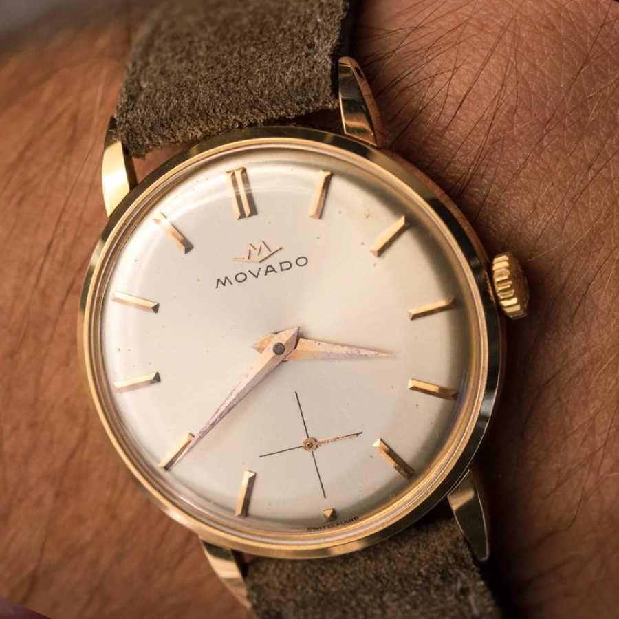 ১৯৫০ সালে তৈরি অটোমেটিক ঘড়ি। ১৮ ক্যারাটের রোজ় গোল্ডে তৈরি ডায়াল। তার উপরে সংখ্যার বদলে রোজ গোল্ডেরই ১২টি দাগ। রয়েছে ক্রোনোগ্রাফ। তবে তা-ও একেবারে বাহুল্যবর্জিত। ঘড়ির নকশার ওই আড়ম্বরহীনতার জন্যই সম্ভবত সুইস ঘড়ি নির্মাতা মোভাডো মডেলের নাম দিয়েছিলেন ‘টাইম ওনলি’। কোনও রকম জটিলতা ছাড়া সময় দেখার বন্দোবস্তই এই ঘড়ির মূল কথা।