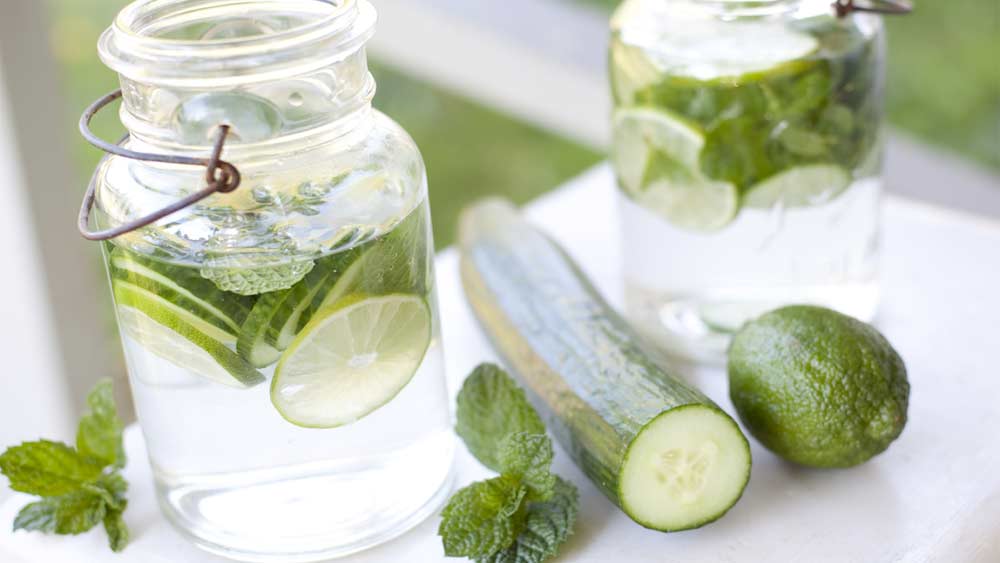 জলের সঙ্গে পুদিনা পাতা কিংবা ফলের কুচি ভিজিয়েও পান করতে পারেন। ফাইল ছবি।