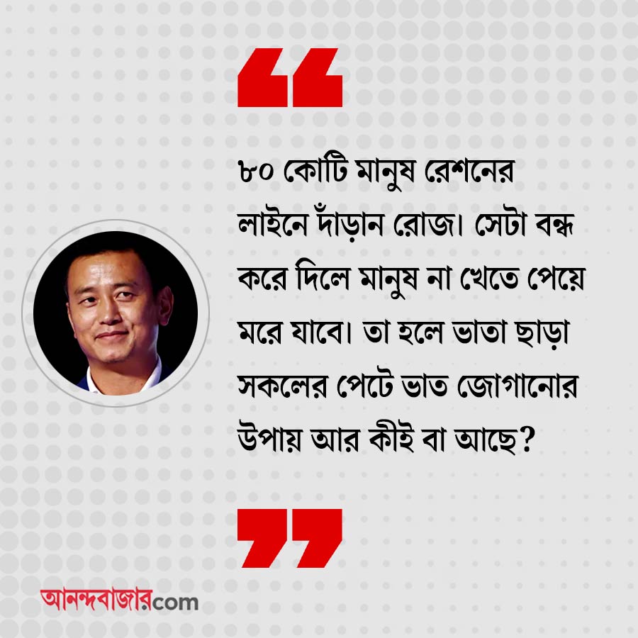 ভাইচুং: ভারতের মতো দেশে ভাতা-র প্রয়োজনীয়তা রয়েছে। আমাদের অর্থনীতির সঙ্গে অন্য দেশের তুলনা করলে চলবে না। এ দেশে মাত্র ৫-১০ শতাংশ মানুষ পুঁজি নিয়ন্ত্রণ করে। ৮০ কোটি মানুষ রেশনের লাইনে দাঁড়ান রোজ। সেটা বন্ধ করে দিলে মানুষ না খেতে পেয়ে মরে যাবে। তা হলে ভাতা ছাড়া সকলের পেটে ভাত জোগানোর উপায় আর কীই বা আছে? কিন্তু এই ব্যবস্থায় সম্পূর্ণ স্বচ্ছতা এবং সততার প্রয়োজন।
