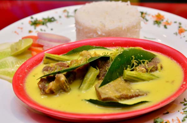 প্রণালী: আদা, রসুন বাটা, পেঁয়াজের টুকরো ও নুন প্রেশার কুকারে ভাল করে সেদ্ধ করে নিন। মাংস তুলে নিয়ে জলটা ছেঁকে রাখুন। এরপর স্টকে কাঁচা লঙ্কা বাটা ও ডাঁটা দিয়ে সেদ্ধ করে নিন। সামান্য একটু হলুদ দিতে হবে। স্বাদ অনুযায়ী নুন মিষ্টি দিয়ে ঘন করে নিতে হবে। মাংসের টুকরো দিয়ে আরও কিছু ক্ষণ ফুটিয়ে নিয়ে নারকেলের দুধ ঢেলে নামিয়ে রাখুন। এর মধ্যে লেবুর রস ও পাতা দিয়ে কিছু ক্ষণ চাপা দিয়ে রাখতে হবে। গন্ধরাজের সুগন্ধ স্টু-এর সঙ্গে মিলেমিশে গেলে গরমাগরম পরিবেশন করুন।