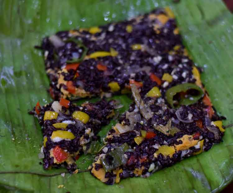 ব্রাউন রাইসের নাম শুনেছেন। কিন্তু ব্ল্যাক রাইস? না, অনেকেই হয়ত শোনেননি। খাদ্যগুণে ভরপুর এই রাইসের সঙ্গে চিজ, চিকিনের টুকরো এবং আরও নানা উপকরণ মিশিয়ে বানানো হচ্ছে চাক হো চিকেন। সুদূর মায়ানমার থেকে আসছে এই চাল। ডিশটি দেখতে কেকের মত। কিন্তু চামচ দিয়ে কেটে মুখে পড়লেই... আহা। এর বেশি আর বলা যাবে না। আপনাকে খেয়ে দেখতে হবে। ব্ল্যাক রাইস দিয়ে আরও নানা পদের সন্ধানে রয়েছেন তাঁরা, জানালেন অভিজিৎ সাহা।