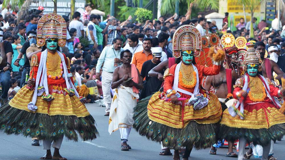 অতিমারি পরিস্থিতিতেও ওনাম উৎসব ছিল ভিড়ে ঠাসা। মাস্ক দেখা যায়নি বেশিরভাগের মুখেই। ফাইল ছবি।
