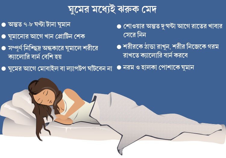 মানে, ঘুমের হরেক নিয়ম ও তার আগে-পরের নানা অভ্যাসই কমিয়ে দেবে মেদ। এ সব স্বভাব জানা থাকলে ঘুমের মধ্যেই কমিয়ে ফেলতে পারবেন কয়েক কেজি ওজন।