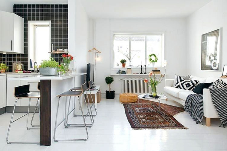 এমন আসবাব কেনা উচিত যেখানে স্টোরেজ়ের ব্যবস্থাও থাকবে। সোফা কাম বেড, স্টোরেজ-সহ টেবিল... এই রকম ফার্নিচার ব্যবহার করাই শ্রেয়। ঘরের দেওয়াল কাজে লাগানো যেতে পারে। শেলফ এবং স্টোরেজ দিয়ে দেওয়াল সাজিয়ে নিতে পারেন। এই ধরনের অ্যাপার্টমেন্টে কোনও ঢাউস ফার্নিচার ব্যবহার করা মোটেই উচিত নয়।