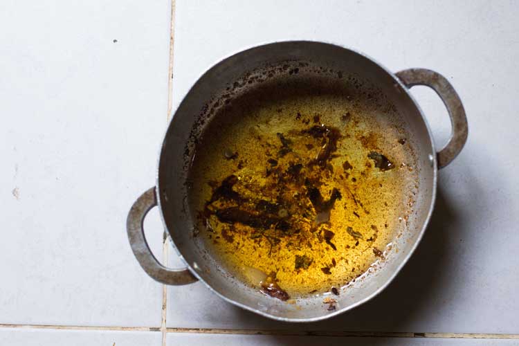 আমাদের ধারণা, গরম কড়াইতে তেল দেওয়ার পর যত ক্ষণ না ধোঁয়া ওঠে, ফোড়ন বা মাছ–সব্জি দিতে নেই৷ তা না হলে রান্নায় কাঁচা তেলের গন্ধ থেকে যায়৷