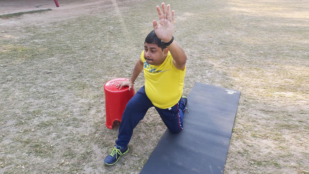 কোনও কিছু ধরে বা সাপোর্ট নিয়ে লাউঞ্জ করার (এক পা ভাঁজ করে, অন্য পা পিছনে টেনে ছড়িয়ে) ভঙ্গী করুন। সামনের পা যতটা পারা যায় সামনে রাখুন। দেখবেন থাই আর পেটের নীচে টান পরছে। কোমরের অংশের গতিশীলতা বাড়ানোর জন্য এটি গুরুত্বপূর্ণ। ১০-২০ সেকেন্ড ধরে থাকুন। মোট ৩ বার রিপিট করুন ।