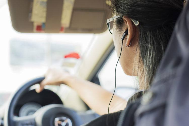 গাড়ি চালাতে চালাতে ইয়ারফোন? এমন ভুল খবরদার নয়! ছবি: শাটারস্টক।
