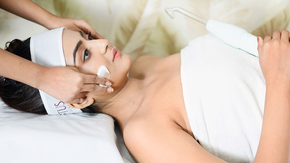 • দ্বিতীয় ধাপ: সমস্যা বুঝে অক্সিজেন, রেজুভিনেটিং বা হাইড্রেটিং জেল বা সেরাম লাগিয়ে মেশিনের সাহায্যে মাসাজ করা হয়। মিনিট পাঁচেক এ ভাবে চলার পরে অনুভূতিপ্রবণ ত্বকের উপযুক্ত ক্রিম দিয়ে মাসাজ।