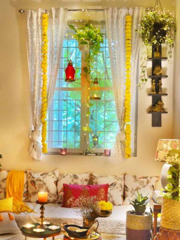 ঘরের দেওয়াল সাজানোর উপায় না থাকলে কোনও একটি জানলাকে সাজিয়ে তুলুন। সুন্দর পর্দা, ফুলের মালা, ছোট ছোট লন্ঠন ঝুলিয়ে দিন বা টুনি বাল্ব। সঙ্গে রাখুন কিছু ইন্ডোর প্ল্যান্ট।