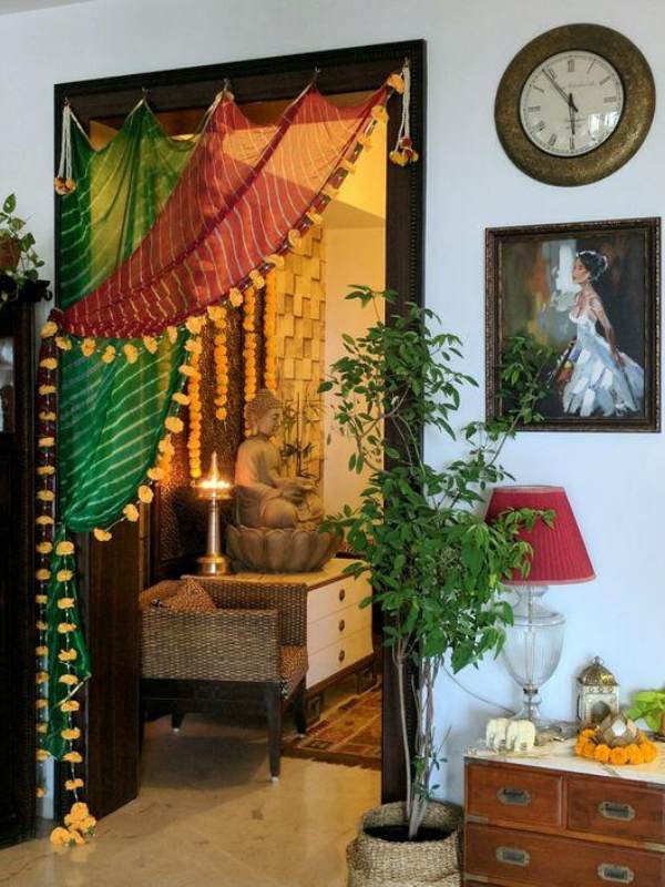 পর্দা বদলেও ঘরের রূপ পাল্টে দেওয়া যায়। পুরনো ওড়না আর ফুলের মালা দিয়ে সাজিয়ে ফেলুন পুজো বা অতিথি সমাগমের ঘরটি। একসঙ্গে একাধিক ওড়নাও ব্যবহার করতে পারেন।
