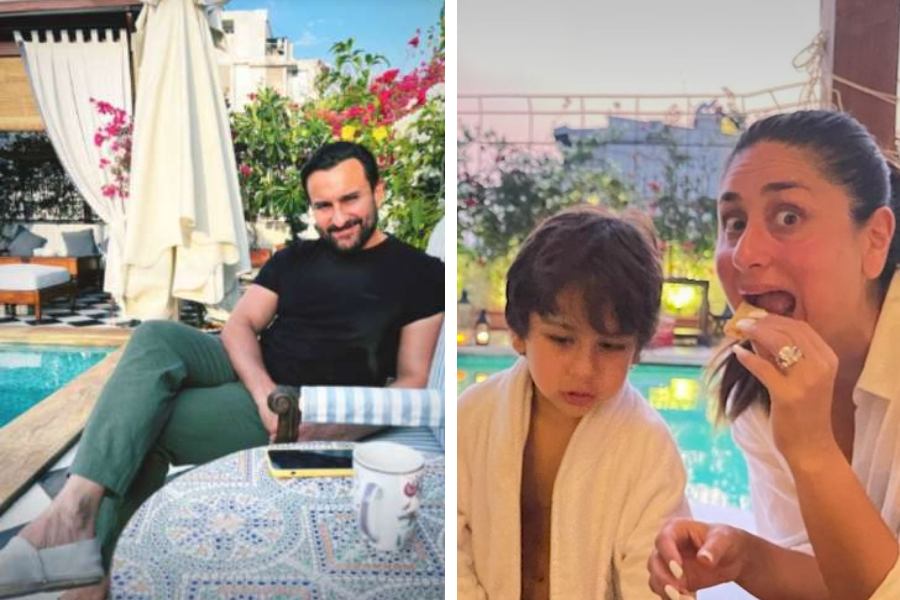 তেমন এক খোলা বারান্দার দরজা ঠেলেই ঢুকে পড়া যায় সইফ-করিনার শোয়ার ঘরে। সেই ঘরের সাজসজ্জাও কিছু কম নয়। শৌখিন ল্যাম্পশেড থেকে শুরু করে ছোট-বড় আসবাব, ফুলদানি এবং সইফিনার ছবি দিয়ে সাজানো দেওয়াল।