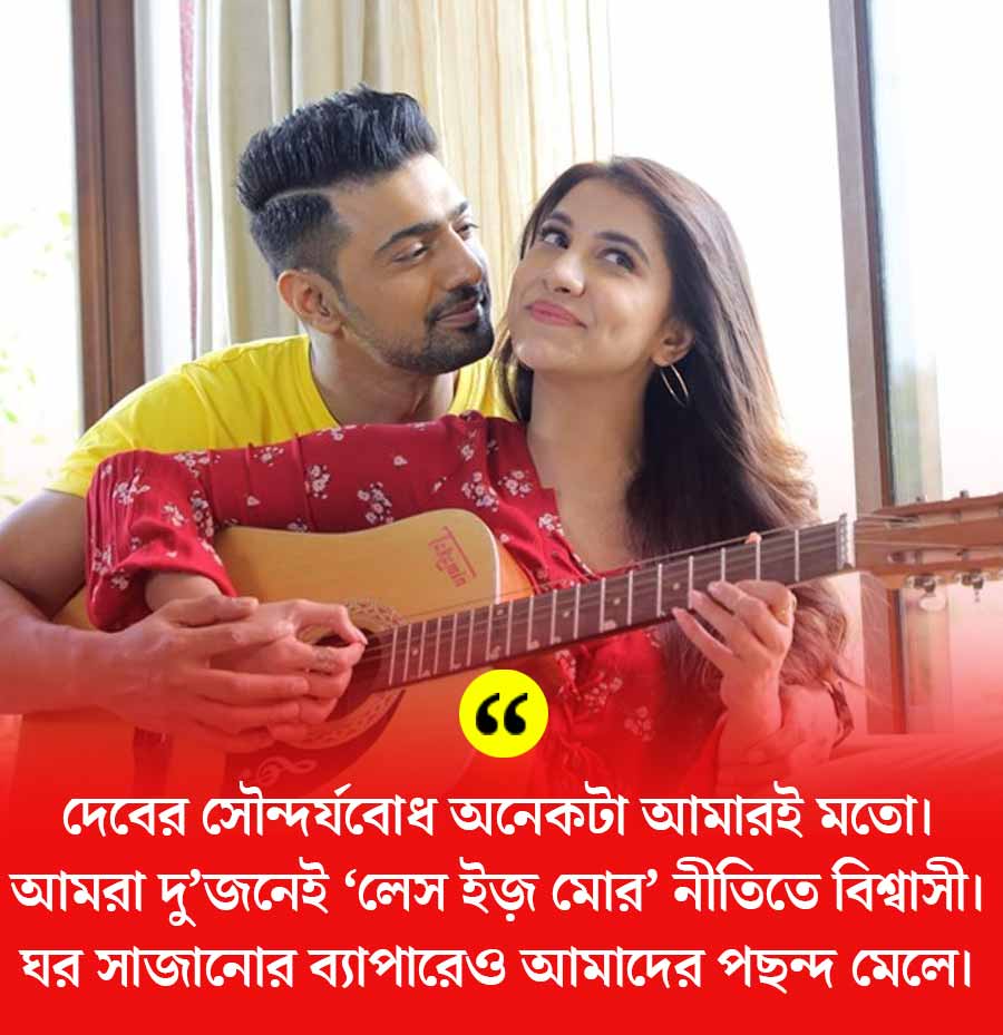 রুক্মিনী: দেব আমার থেকেও বেশি পরামর্শ নেয় আমার মায়ের। দেবের ফ্ল্যাটের অনেক জায়গাই আমার মায়ের পরামর্শ মেনে সাজানো।