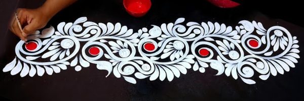 মাঝখানে একটি নকশা এঁকে পাশে কলকা আর পাতার নকশা দিয়ে বাড়িয়ে নিন।