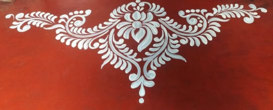 ফুল-পাতার নকশার বাইরে অন্য রকম নকশা করতে হলে আলপনার নকশা ধার নিতে পারেন মেহেন্দির নকশা থেকে।