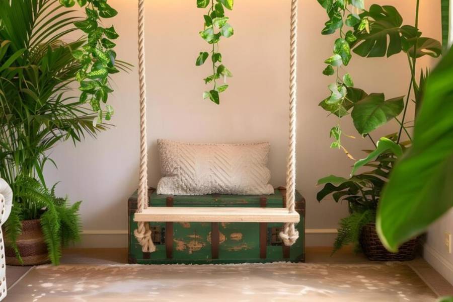 ৫) ঘরের আসবাবের সঙ্গে সামঞ্জস্য রেখে দোলনা কিনুন। বাড়িতে বয়স্করা থাকলে তাঁদের জন্য কিনুন স্ট্যান্ডিং দোলনা। সুন্দর ফ্যাব্রিকের কুশন দেওয়া থাকলে এই ধরনের দোলনা খুবই আরামদায়ক ও দেখতেও আকর্ষণীয়।