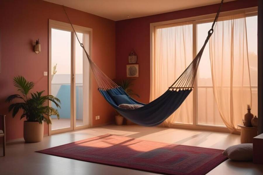 ২) বারান্দার জন্য সবচেয়ে ভাল হ্যামক। যেখানে হ্যামক লাগাবেন, সেখানে মেঝেতে সিমেন্ট দিয়ে আধ ইঞ্চি উঁচু করে একটি আয়তাকার সীমারেখা তৈরি করুন। এ বার তার মধ্যে ভরে দিন পরিষ্কার করা চকমকি নুড়িপাথর। সেই ছোট্ট পাথরের গালিচার উপর দু’দিকে পোক্ত দু’টি আংটায় বেঁধে বসিয়ে দিন হ্যামক।