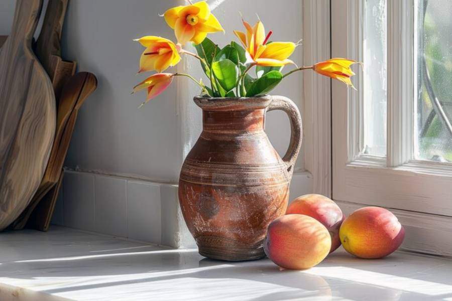 খাবার জায়গায় টেবিলের উপর ছোট, ঈষৎ গোলাকার ফুলদানিতে রঙিন ফুল রাখলেই বেশি ভাল লাগবে। এখন বিভিন্ন জ্যামিতিক নকশার ফুলদানি পাওয়া যায়। তেমনও রাখতে পারেন খাওয়ার টেবিলে। ঘর সাজাতে সাহেবিয়ানা যাঁদের পছন্দ তাঁরা ঘরে রাখতে পারেন কাচের ফুলদানি। কাচের বাল্ব, টেস্ট টিউব, নল নানা আকারের ফুলদানি এখন পাওয়া যায়। পছন্দমতো কিনে নিতে পারেন।