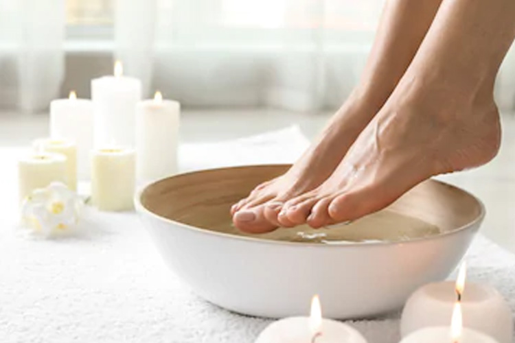 ঈষদুষ্ণ জলে পায়ের গোড়ালি অবধি ডুবিয়ে বসুন।