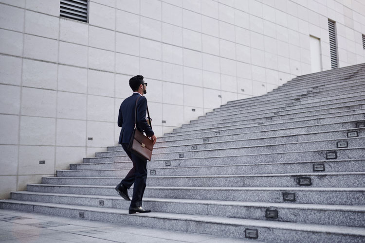 সিঁড়ি ভেঙে ওঠার অভ্যাসই জানিয়ে দেবে হার্টের অবস্থা। ছবি: আইস্টক।
