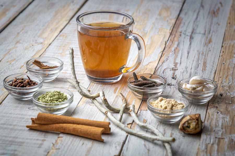 চা-কফিতে ক্যাফেন থাকে। অতিরিক্ত ক্যাফেন শরীরের পক্ষে ভাল নয়। তবে একজন সুস্থ ব্যক্তি দিনে দু’-তিন কাপ চা পান করতেই পারেন। পরিমিত আহারের মতো পরিমিত চা পান শরীরের উপকার করে! গবেষণায় দেখা গিয়েছে, দুধ-চিনি ছাড়া লিকার চা শরীরের রক্তচাপ ঠিক রাখতে, কার্ডিয়োভাসকুলার হেলথ, পরিপাক ক্রিয়া ঠিক রাখতে সহায়ক। কিছু ক্ষেত্রে ক্লান্তি ও উদ্বেগ কমাতে এবং কাজে মনোনিবেশ করতেও সাহায্য করে। সর্দি-কাশিতে আরাম দেয় আদা, লবঙ্গ, তুলসীপাতা দিয়ে তৈরি চা। অনেকেই প্যাকেটজাত ভেষজ চা বা আইস টি পান করেন, সেটা ভাল নয়। এগুলিতে প্রিজ়ারভেটিভস থাকে, ফলে উপকারের বদলে অপকারই হয়। বরং চায়ে গন্ধরাজ লেবুর রস, মধু, তুলসীপাতা ও বরফ মিশিয়ে বাড়িতেই তৈরি করে নিন আইস চা। অনেকে ঘুম কাটাতে চা পান করেন। আবার দেখা গিয়েছে রাতের খাবারের পরে ক্যামোমাইল চা পান করলে ভাল ঘুম হয়। তবে সারা দিন অনেক বার চা খেলেন আর ঘুমের জন্য ক্যামোমাইল চা খেলেন, এতে কিন্তু বিশেষ কাজ হবে না।