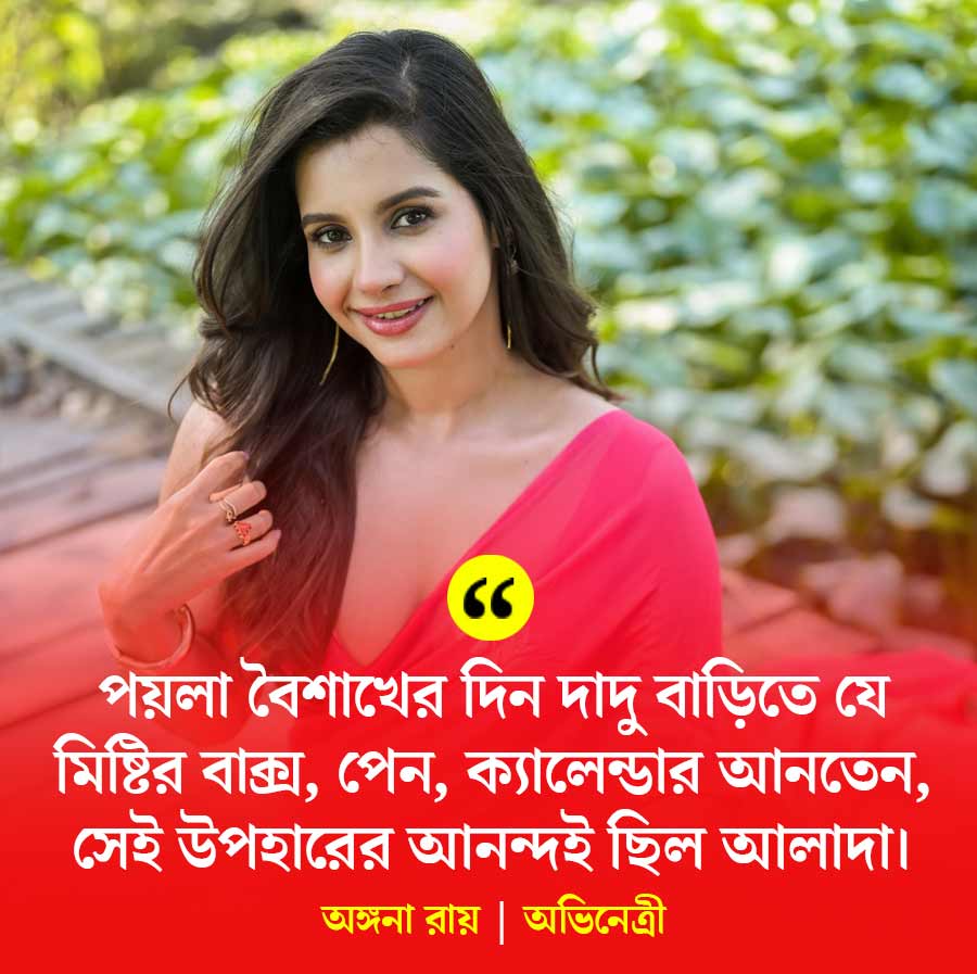 পয়লা বৈশাখের সময় আর এক রকম উপহারের প্রসঙ্গ না টানলেই নয়। দোকানে দোকানে হালখাতা করতে গিয়ে রকমারি উপহার প্রাপ্তি। নরম পানীয় আর মিষ্টির বাক্সের সঙ্গে একটা উপহার নিশ্চিত। নতুন বছর নিয়ে সেই রকম স্মৃতিই ভাগ করে নিলেন অভিনেত্রী অঙ্গনা রায়। অভিনেত্রী বললেন, ‘‘সময়ের সঙ্গে সঙ্গে বাঙালির পয়লা বৈশাখের উদ্যাপন অনেকটাই বদলে গিয়েছে। অনেক সময়েই মনে হয়, পুরনো দিনগুলিই তো ভাল ছিল। ছোটবেলায় দেখতাম, মা-বাবা পরিবারের কাছের লোকজনকে পয়লা বৈশাখে নতুন জামা উপহার দিতেন। যখন আসানসোলে দাদু-দিদার কাছে ছিলাম, তখন দাদু পয়লা বৈশাখের দিন সন্ধ্যাবেলা বিভিন্ন দোকানে হালখাতা করতে যেতেন। ফেরার সময় সঙ্গে করে নিয়ে আসতেন ক্যালেন্ডার, পেন, মিষ্টির বাক্স। সেই উপহার পাওয়ার আনন্দটাই ছিল আলাদা। বড় হওয়ার পর এখন আমার উপহার দেওয়ার পালা। আমি চেষ্টা করি ওই দিন বাবা-মা আর দাদুকে একটা নতুন পোশাক উপহার দিতে। তবে উপহারের থেকেও বাড়ির লোকজনকে সময় দিলে তাঁরা বেশি খুশি হন। তাই ওই দিনে শুটিং না থাকলে বাড়িতেই তাঁদের সঙ্গে দিনটা কাটানোর চেষ্টা করি।’