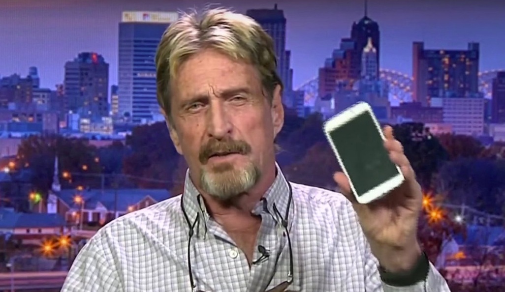 নিজের তৈরি ফোন হাতে নিয়ে জন ম্যাকআফি