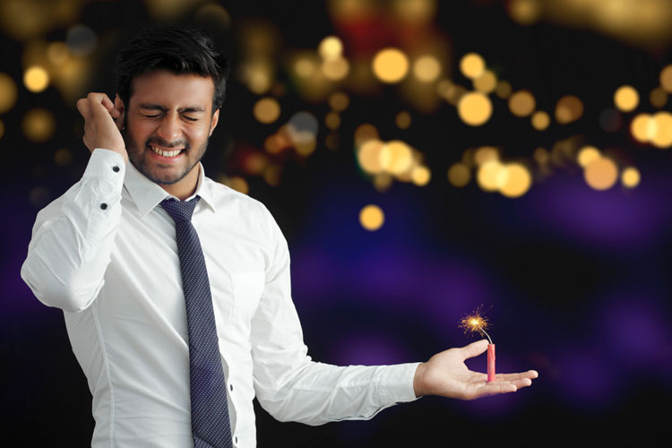 এমনিতেই সাধারণ কথাবার্তার আওয়াজ যেখানে ঘোরাফেরা করে ৬০ ডেসিবেলের মধ্যে, শহরে বাস করলে বেশির ভাগ সময় থাকতে হয় ৮৫–৯০ ডেসিবেলের আওতায়৷ কারণ গাড়ি–ঘোড়ার হর্নের আওয়াজের তীব্রতার মাপটা অনেকটা ওই রকমই৷ এ রকম পরিস্থিতিতে কানের গোড়ায় শব্দবাজির ১৪০–১৫০ ডেসিবেলের একটি আওয়াজই আপনাকে ঠেলে দিতে পারে বধিরতার দিকে৷ বিশেষ করে আপনি যদি বধিরপ্রবণ হন৷ অর্থাৎ বয়স বেশি ও এমনিতেই কানে একটু কম শোনেন, কানের ক্ষতি করতে পারে এমন ওষুধ খান, দিনের মধ্যে অনেকটা সময় চড়া আওয়াজের মধ্যে কাটাতে হয়— তা হলে এই আওয়াজ সর্বনাশ করতে পারে।