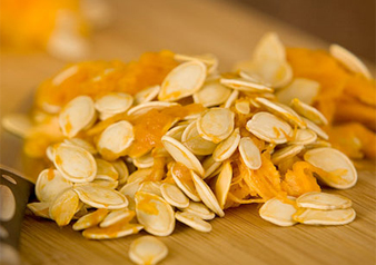 প্রতি ২৮ গ্রাম কুমড়োর বীজের ৫ গ্রামই প্রোটিন। সকালের পোরিজ, স্মুদি বা একমুঠো বাদামেপ সঙ্গে খেয়ে নিতে পারেন কুমড়োর বীজ। এতে ট্রিপটোফ্যান-১ প্রচুর পরিমাণ থাকায় শরীরের রোগ প্রতিরোধ ক্ষমতাও বৃদ্ধি পায়।