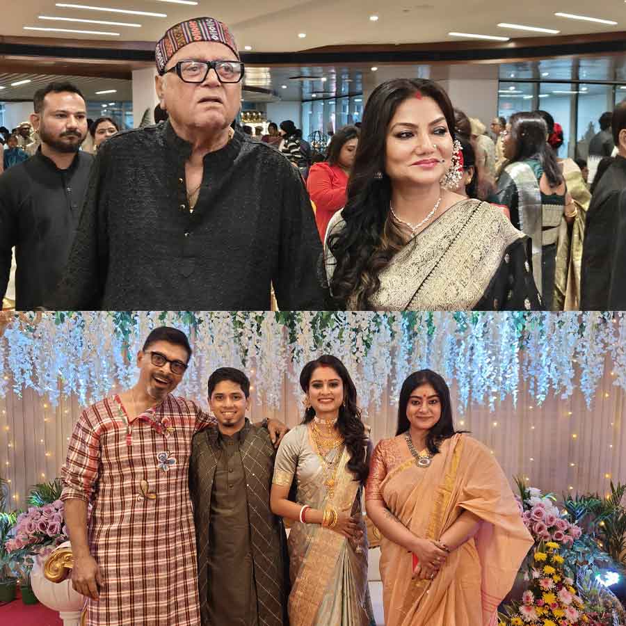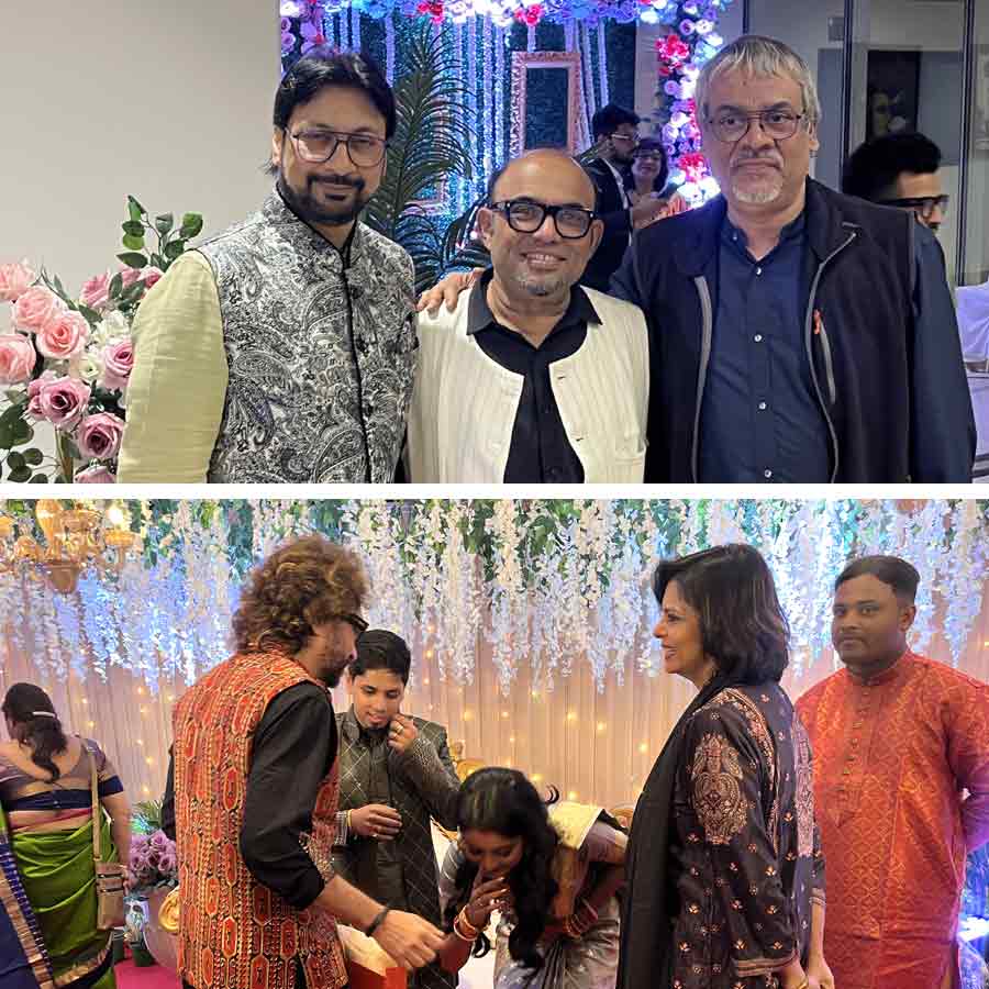 সবুজ ব্লাউজ়, লাল বেনারসি এবং ভারী গয়নায় সকলের নজর কেড়েছিলেন অভিনেত্রী ঋতুপর্ণা সেনগুপ্ত। অন্য দিকে, নতুন ছবির প্রিমিয়ার সেরে উপস্থিত হয়েছিলেন দেব এবং রুক্মিণী মৈত্র। তাঁদের কালো শেরওয়ানি এবং ফুলছাপ অফ-শোল্ডার গাউন সকলের সাজের মধ্যে বিশেষ ভাবে নজর কেড়েছিল। স্ত্রী ও মেয়ের সঙ্গে শাশ্বত চট্টোপাধ্যায় আড্ডার মেজাজে অনুষ্ঠানে প্রবেশ করেন। টেকনিশিয়ান স্টুডিয়োর প্রধান এবং ফেডারেশন অফ ডাব্লিউবি ফিল্ম অপারেটিভের সভাপতি স্বরূপ বিশ্বাসের সাজে ছিল সাদা শার্টের উপর সুতোর কাজ করা পাখির ছোট ছোট প্রতিকৃতি। লাল-কালো বেনারসিতে বিয়ের আসরে পৌঁছোন মৌসুমী সাহা। হইহুল্লোড়ের মেজাজে ধরা দিলেন শ্রীময়ী চট্টরাজ এবং কাঞ্চন মল্লিক। গাঢ় নীলচে সবুজ রঙের বেনারসিতে অভিনেত্রী নজরকাড়া। অভিনেতার পরনে গাঢ় নীল গলাবন্ধ শেরওয়ানি।