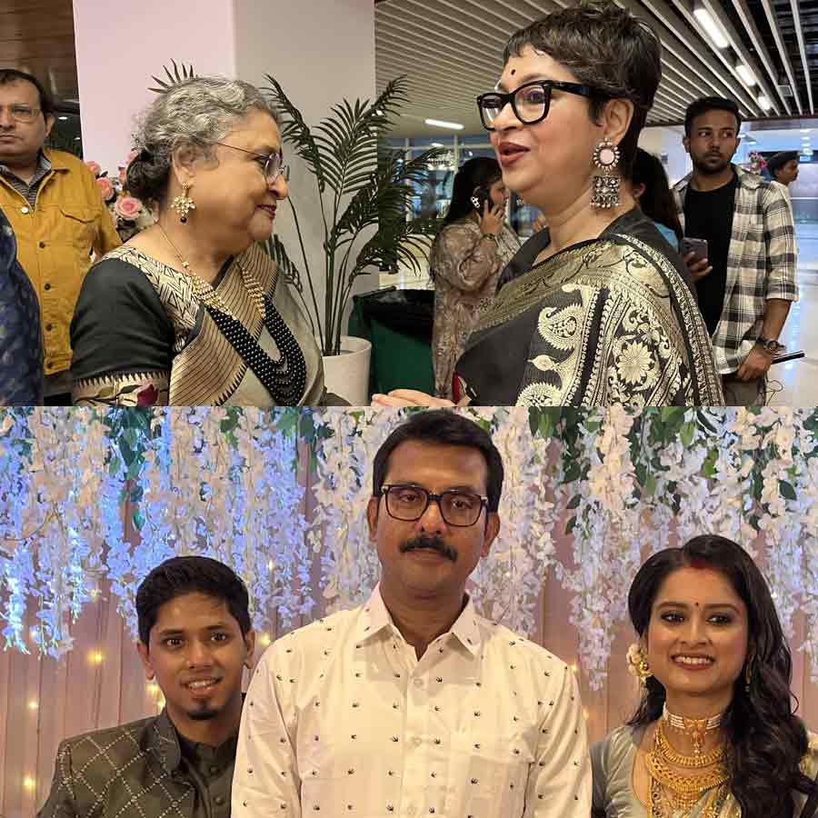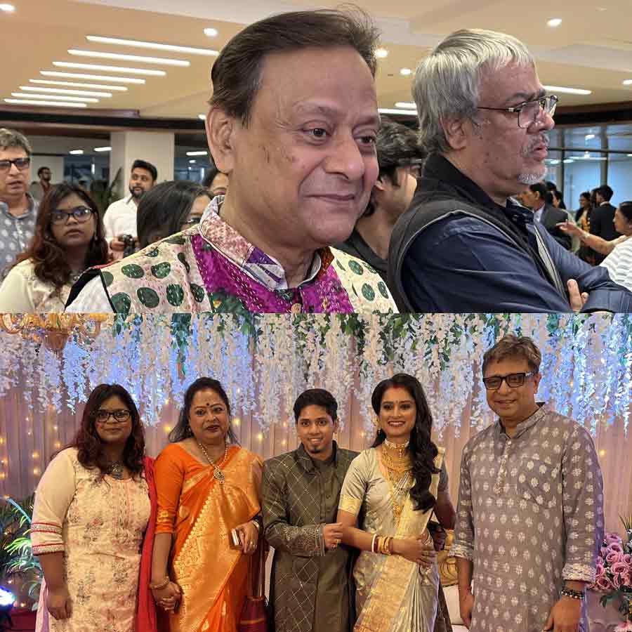 অসংখ্য কাজের চাপের মাঝেও খরাজের ছেলে বিহু এবং তাঁর স্ত্রী রোজার রিসেপশনে হাজিরা দিতে ধনধান্যে পৌঁছোন রাজ্যের শিক্ষামন্ত্রী ব্রাত্য বসু।