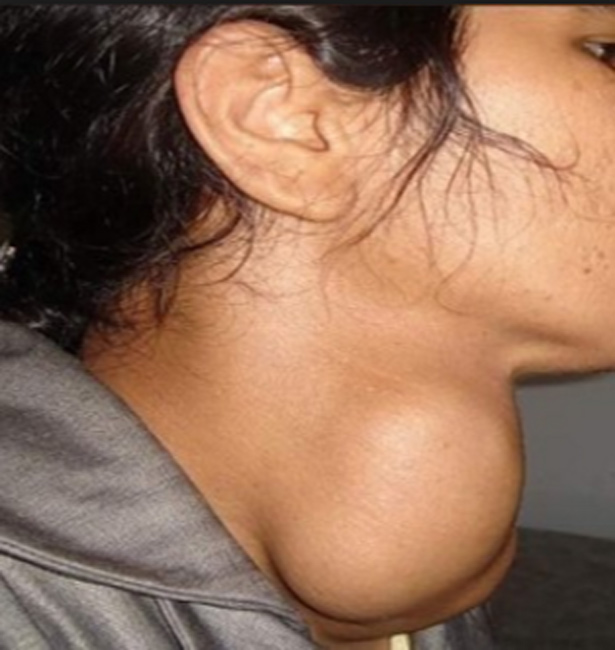থাইরয়েড গ্রন্থি বৃদ্ধি পাওয়ার ফলে গয়টার হয়। গলা ফুলে যায়।