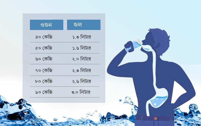 নীচের চার্ট থেকে জেনে নিন ওজন অনুযায়ী কতটা জল খাবেন