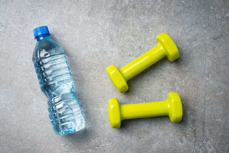 ডাম্বেলের বদলে জল ভর্তি বোতল নিয়েও অভ্যাস করতে পারেন ব্যায়াম।
