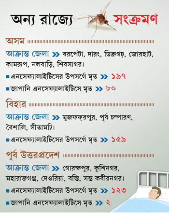 সোমবার সংসদে এনসেফ্যালাইটিস প্রসঙ্গে আলোচনায় নতুন প্রজাতির ওই এনসেফ্যালাইটিসের সংক্রমণের কথা জানান কেন্দ্রীয় স্বাস্থ্যমন্ত্রী হষর্বর্ধন। মন্ত্রীর এদিনের বক্তব্য থেকে পরিষ্কার এনসেফ্যালাইটিস এখন শুধু মাত্র পশ্চিমবঙ্গ কিংবা অসমের সমস্যা নয়, গোটা পূর্ব ভারতের সমস্যা। রোগ ছড়িয়েছে বিহার এবং পূর্ব উত্তর প্রদেশেও। যে ভাবে ওই রোগ নতুন নতুন এলাকায় ছড়িয়ে পড়ছে তাতে তাতে কেন্দ্রীয় স্বাস্থ্যমন্ত্রক উদ্বিগ্ন। ওই রোগ প্রতিরোধে নতুন পরিকল্পনা না নিতে পারলে যে পরিস্থিতি আয়ত্তের বাইরে চলে যেতে পারে এমন আশঙ্কা করছেন মন্ত্রকের অনেকেই। এনসেফ্যালাইটিস নিয়ে তাঁর সেই উদ্বেগের কথাই এদিন সংসদে দাঁড়িয়ে জানালেন কেন্দ্রীয় স্বাস্থ্যমন্ত্রী।