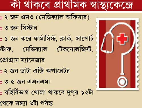 পরিকল্পনা অনুযায়ী, মেদিনীপুরের পর ঝাড়গ্রাম শহরে প্রকল্পের কাজ শুরু হবে। এরপর রয়েছে খড়্গপুর, ঘাটাল শহর। মেদিনীপুর শহরে সব মিলিয়ে ১২৬টি মহিলা আরোগ্য সমিতি তৈরি হওয়ার কথা। জেলা স্বাস্থ্য দফতরের এক কর্তার কথায়, “৫০-১০০টি বাড়ি পিছু একটি করে মহিলা আরোগ্য সমিতি থাকবে। ১০ হাজার জন বাসিন্দা পিছু একটি করে উপ-স্বাস্থ্যকেন্দ্র থাকবে।” প্রাথমিক স্বাস্থ্য কেন্দ্রের পরিকাঠামো ঠিক কেমন হবে? স্বাস্থ্য দফতর সূত্রে খবর, এক-একটি প্রাথমিক স্বাস্থ্য কেন্দ্রে ১৫-১৭ জন থাকবেন। এর মধ্যে ২ জন এমও (মেডিক্যাল অফিসার), ৩ জন সিস্টার, ১ জন করে ফার্মাসিস্ট, মেডিক্যাল টেকনোলজিস্ট, ক্লার্ক, প্রোগ্রাম ম্যানেজার, সাপোর্ট স্টাফ, ২ জন ডাটা এন্ট্রি অপারেটর, ৩-৫ জন এএনএম। বহির্বিভাগ খোলা থাকবে দুপুর ১২টা থেকে সন্ধ্যা ৬টা পর্যন্ত। প্রকল্প চালু নিয়ে পুরসভার সঙ্গে স্বাস্থ্য দফতরের আলোচনাও হয়েছে।