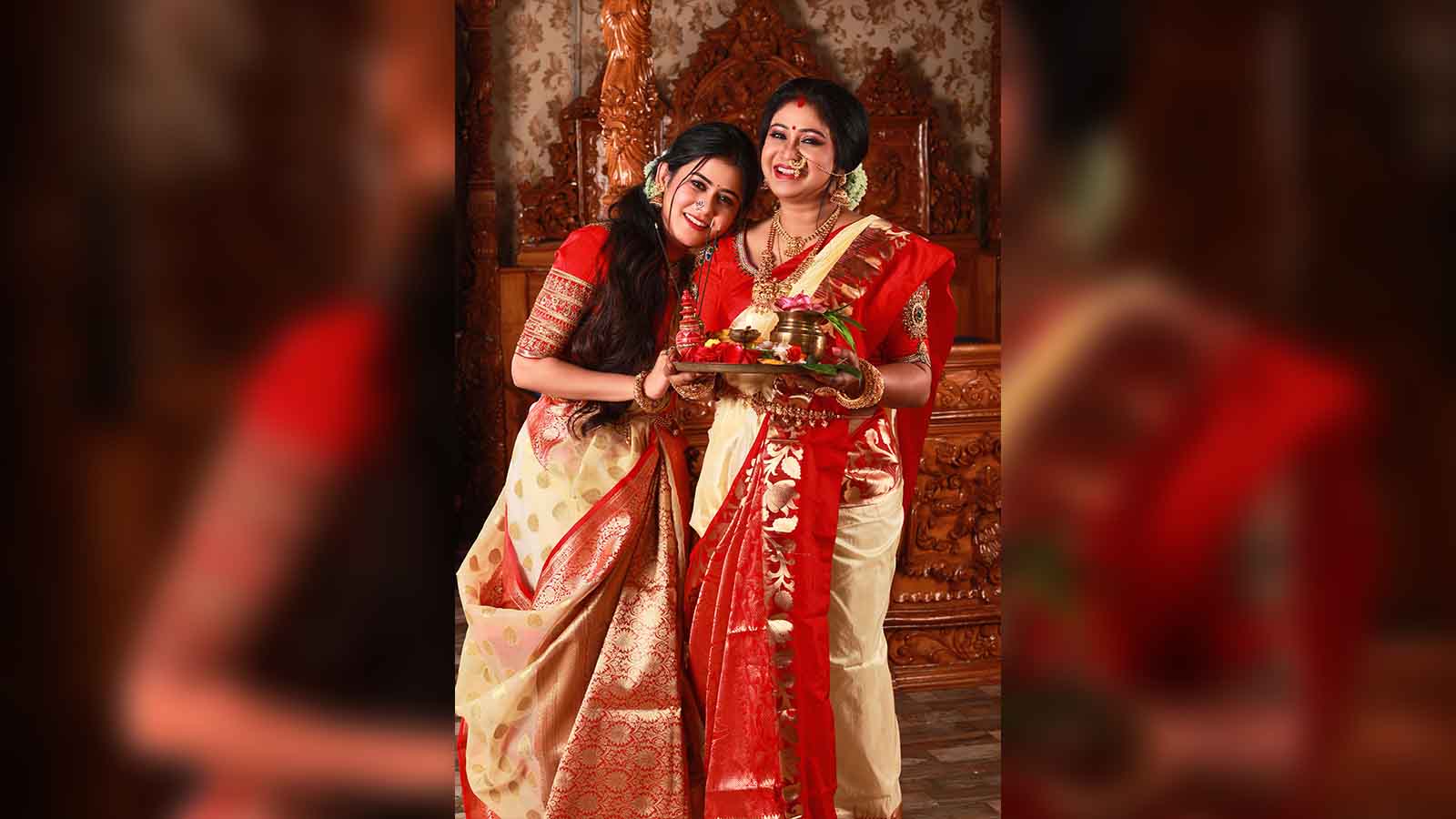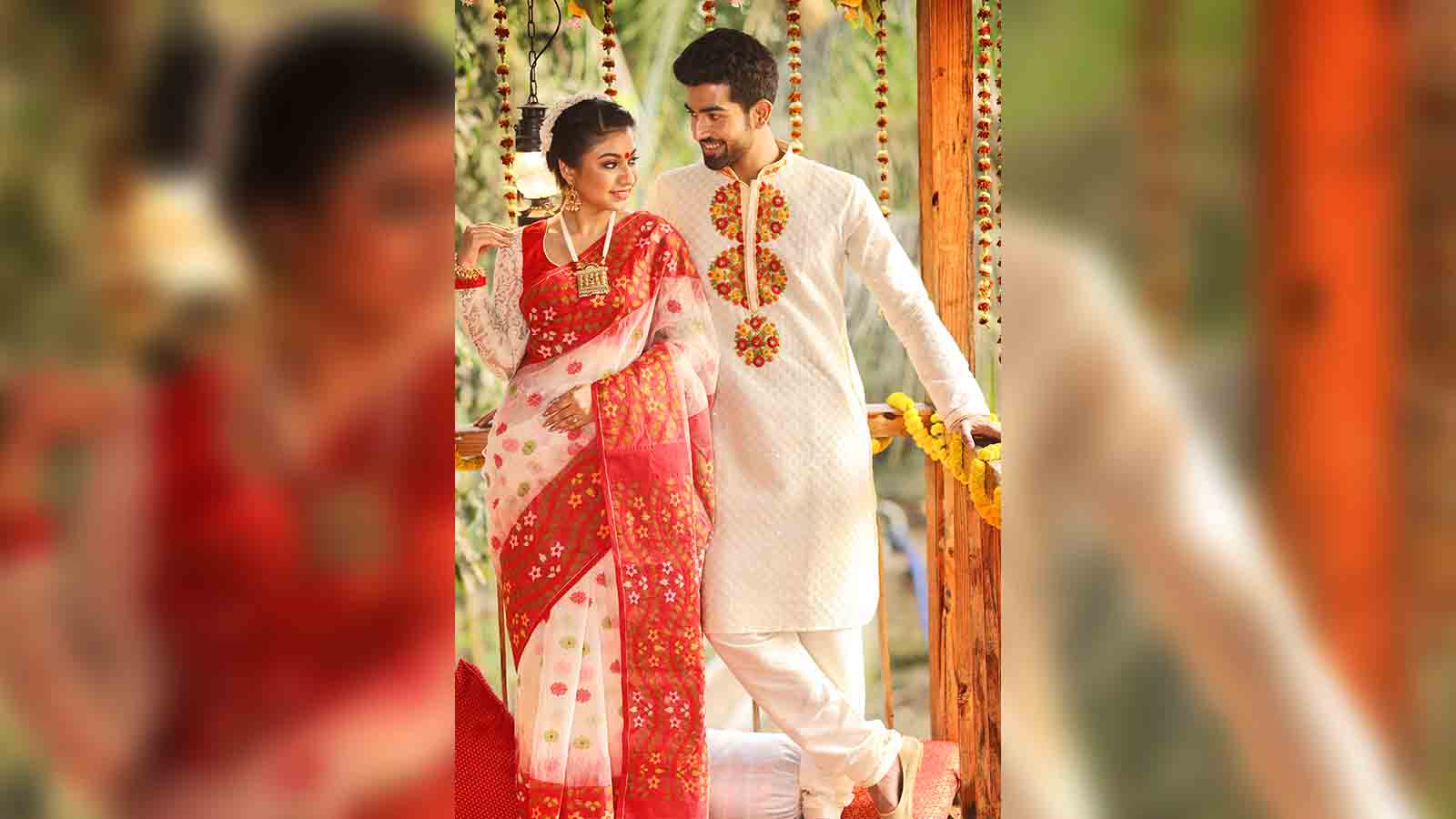 শরতের নীল আকাশের নীচে জুটিতে প্যান্ডেল হপিং? তাহলে আপনারা দুটিতে সাজতেই পারেন তাল মিলিয়ে। লাল সাদা জামদানি-র সাথে লক্ষ্ণৌ চিকনের ফুল স্লীভ ব্লাউজ এনেছে আলাদা ডাইমেনশন। আপনার ভালোবাসার মানুষটিকে সাজেস্ট করুন সেল্ফ ওয়ার্ক ও এমব্রয়ডারি করা সাদা পঞ্জাবি। মিস্টি লুকে আপনারা যেন মেড ফর ইচ আদার!